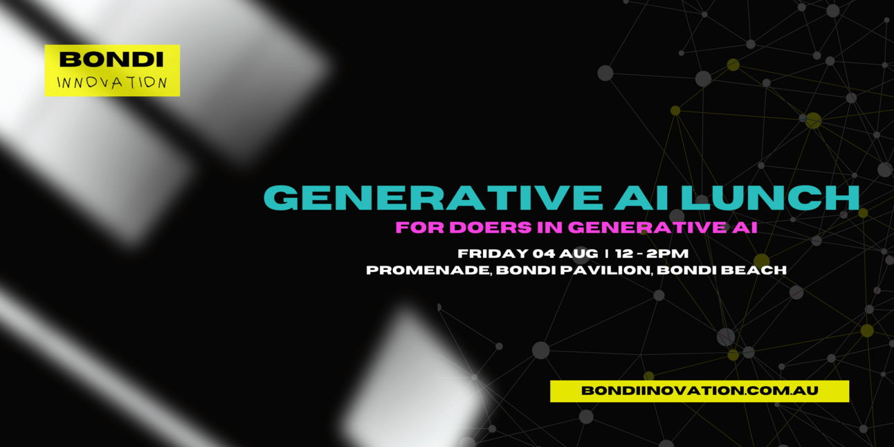 Let’s talk Generative AI! If you are deep into generative AI, either as a founder, creator, developer, power user, or enterprise executive then join others in the space for a lunch at Promenade in Bondi Pavilion on Friday 4 August!